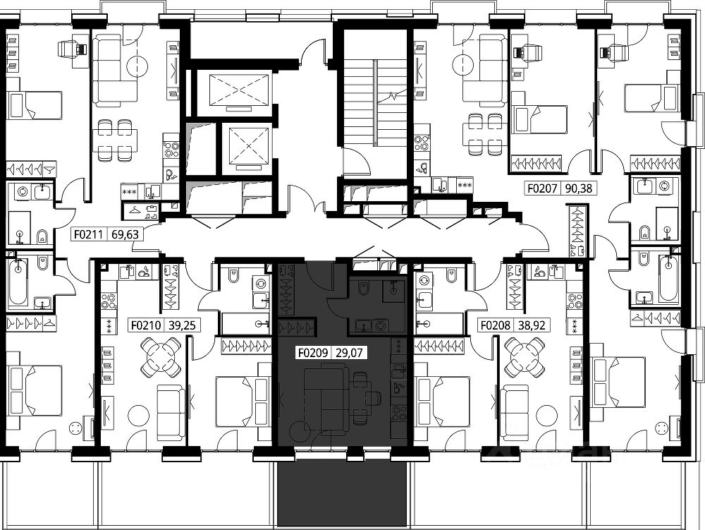 - Широкий выбор квартир - от компактных студий до просторных квартир с тремя спальнями и пентхаусов