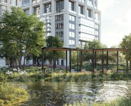 Рядом с Изданием ландшафтный парк, проект которого создали вместе с российско-швейцарским бюро. В нём высажены взрослые высокие деревья с активной кроной, пышные кустарники и многолетники. Жителям не нужно будет ждать пять или десять лет, пока появится тень. Здесь же находится важная точка притяжения — искусственный пруд. Вокруг него беседки и павильон — для встреч с друзьями или медитативного созерцания водной глади. Для выгула и тренировок домашних животных обустроена специальная площадку. На площадках с травяным покрытием можно поиграть в лапту, в мяч или бадминтон, отдохнуть в шезлонгах или надувных креслах. Здесь же на газоне будут проводиться занятия йогой, пилатесом и восточными практиками. Для любителей командных состязаний спроектировали многофункциональную спортивную площадку со стритболом и зоной воркаута. В парке будут такие растения, как - гигантомер груша, тридцатилетние кусты сирени, рябины и боярышника. В сквере сеть бульваров, прогулочных и велосипедных дорожек соединит между собой акценты проекта — природный комплекс, входную площадь, фонтаны.