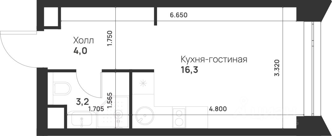 Студия от 22,2 м²