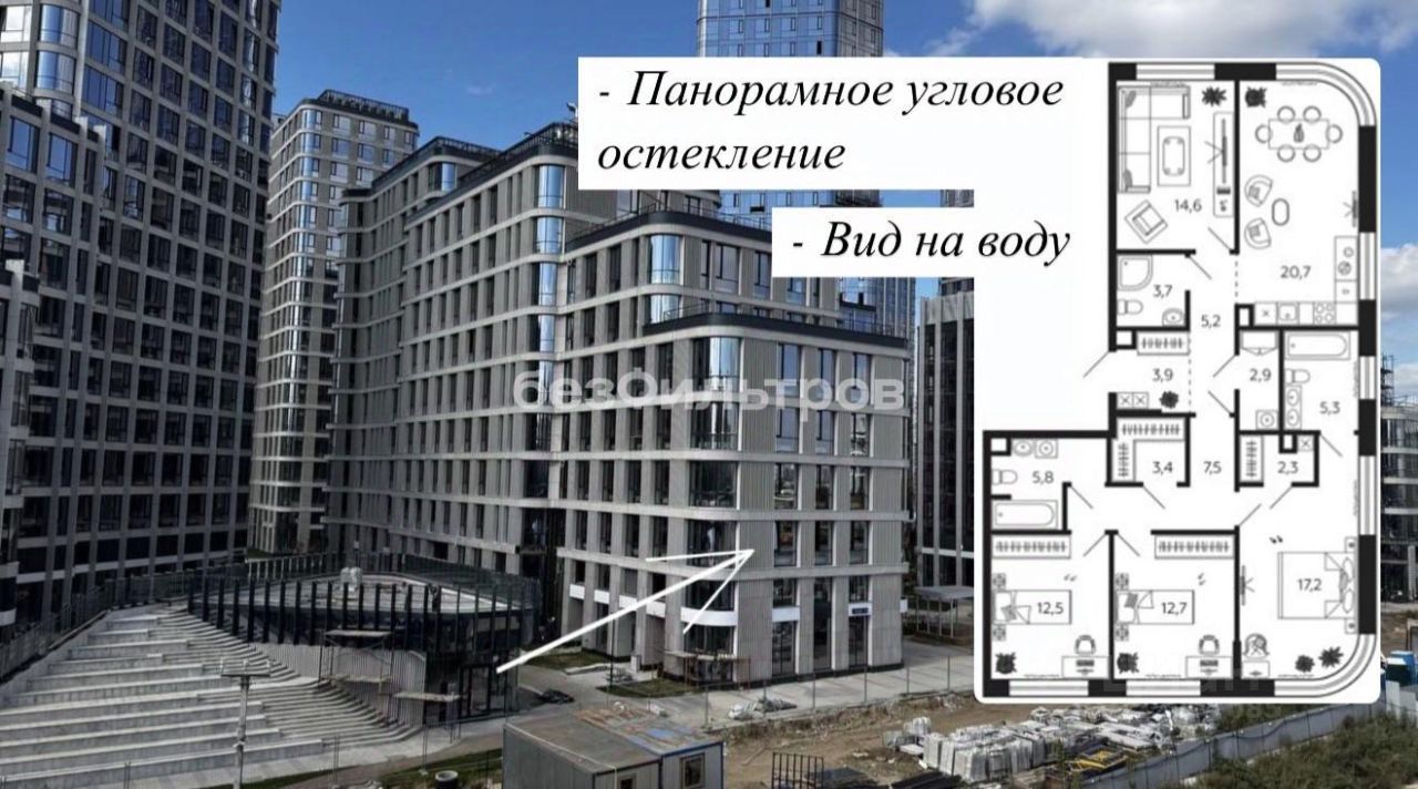 Расположена в корпусе 2.2 на первой линии Москва-реки. Из панорамных окон открывается вид на воду.