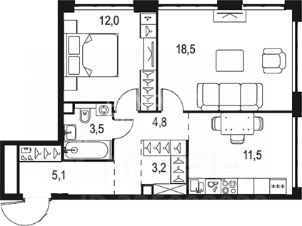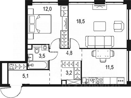 Арт. 127838491 Видовая 2-комнатная квартира 58,6 м² на 44 этаже в ЖК Level Южнопортовая