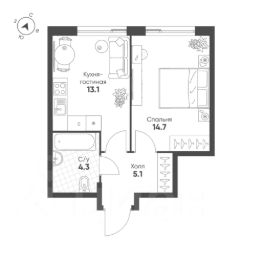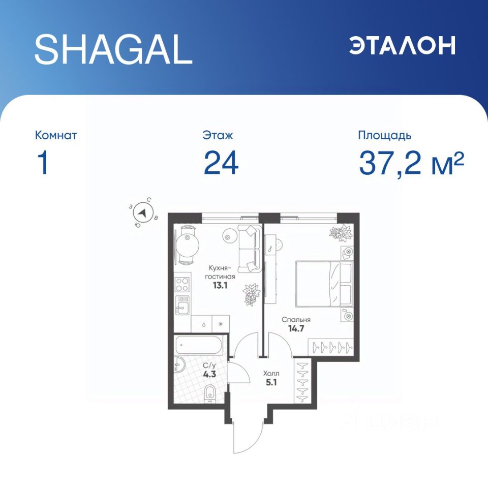 Продается 1-к квартира без отделки в ЖК "Shagal".