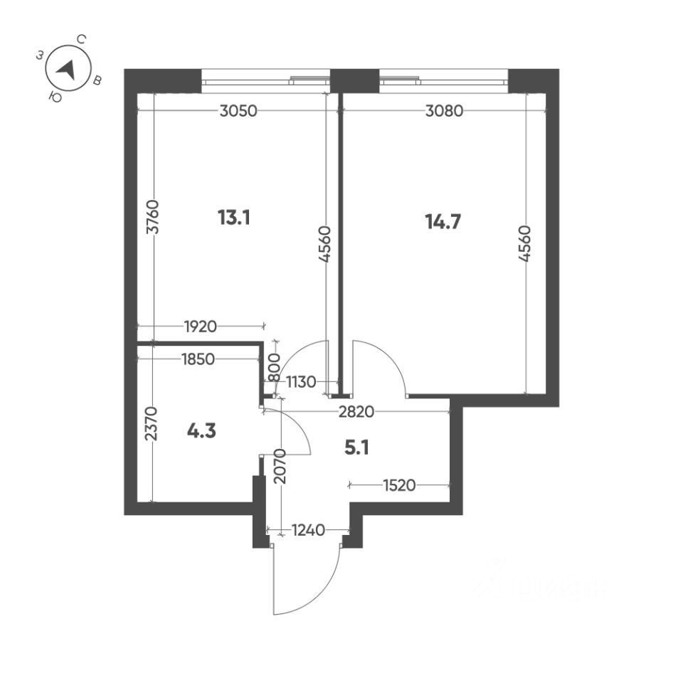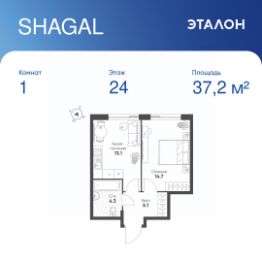 Общая площадь квартиры — 37.2 кв. м, этаж 24 из 26.