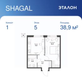Продается 1-к квартира без отделки в ЖК "Shagal".