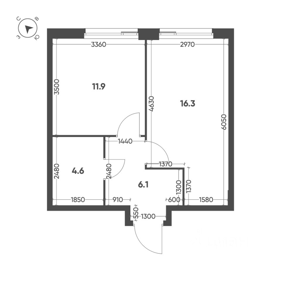 Общая площадь квартиры — 38.9 кв. м, этаж 5 из 26.
