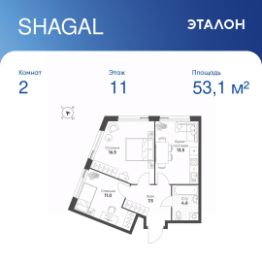 Общая площадь квартиры — 53.1 кв. м, этаж 11 из 26.