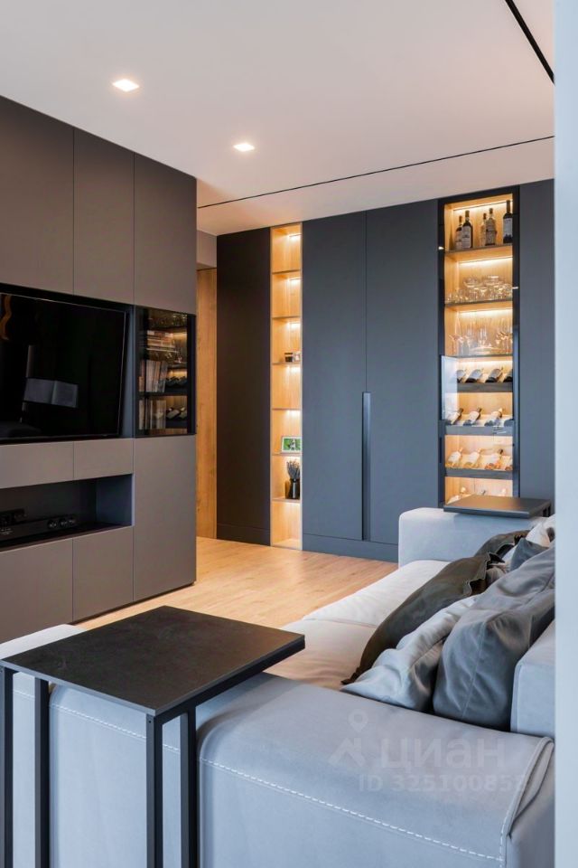 Дизайн-проект: Авторский ремонт выполнен по последним трендам. Четкие линии, функциональная мебель, продуманная система хранения и акцентное освещение.