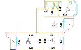 - Комнаты 18,7-19,0-14,9 кв.м.