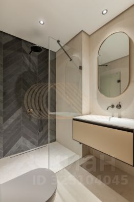 В апартаменте выполнена премиальная отделка в стиле Модерн из натуральных материалов в теплых нейтральных тонах. Полы из инженерной двухслойной дубовой доски. Ванные отделаны мрамором. Установлена итальянская сантехника Catalano, Salini и Tece.