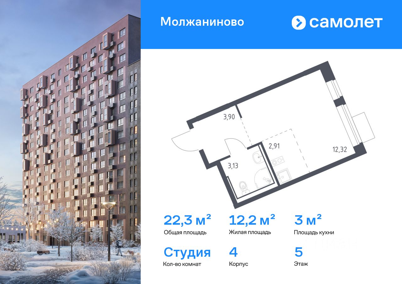 Строим кварталы для жизни с заботой о будущем. Предлагается квартира студия комфорт-класса 22,26 кв.м в корпусе 4 на 5 этаже, в ЖК "Молжаниново"