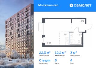 Строим кварталы для жизни с заботой о будущем. Предлагается квартира студия комфорт-класса 22,28 кв.м в корпусе 5 на 4 этаже, в ЖК "Молжаниново"