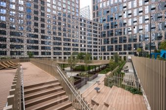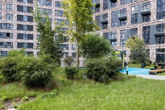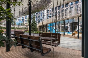 Основные преимущества ЖК: просторный многоуровневый внутренний двор с пешеходным мостом, уютными зонами для отдыха и воркаута, а также детская площадка площадью 280 кв.м, где есть белоснежный песок, напоминающий Мальдивы, и даже скалодром для активных игр!