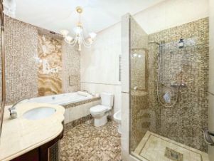 ПЛАНИРОВКА: 3 полноценны Комнаты + 1 проходная комната с окном примыкает к главной спальне: Кухня Столовая с большим эркерным окном; Гостиная с окном; Основная спальня + кабинет с окном или гостевая спальня - идеально подойдет для маленького ребенка (и ребенок рядом и в тоже время отдельно от родителей), но проход в эту комнату через хозяйскую спальню см. фото); вторая большая спальня; гардеробная комната; два санузла: первый - большой санузел с джакузи и душем и второй санузел душевая кабина и биде;
