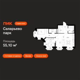 Продаётся 2-комн. квартира площадью 55,1 кв.м на 23 этаже 24 этажного дома (Корпус 82.8, Секция 8) проекта ПИК Саларьево парк. Светлый просторный подъезд на уровне земли, функциональная планировка, большие окна, c отделкой.