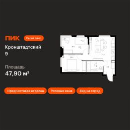 Продаётся 2-комн. квартира площадью 47,9 кв.м на 3 этаже 12 этажного дома (Корпус 1.1.2, Секция 2) проекта ПИК Кронштадтский 9. Светлый просторный подъезд на уровне земли, функциональная планировка, большие окна, предчистовая отделка.