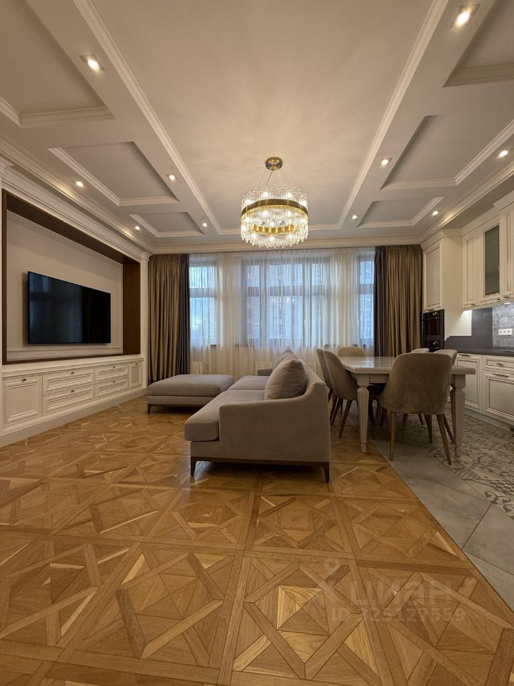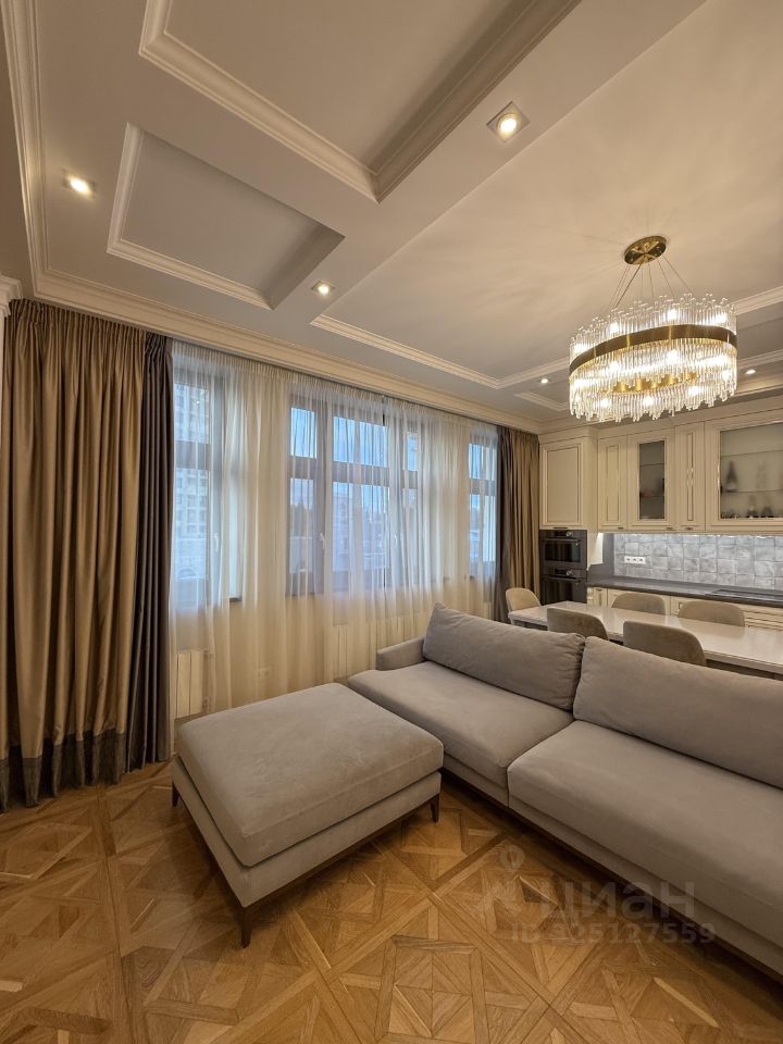 В продаже квартира 130 м. кв. с дизайнерской отделкой в жилом комплексе "Донской Олимп". Квартира с тремя спальнями.