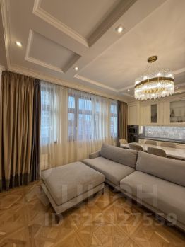 В квартире выполнена дизайнерская отделка в светлых оттенках, с использованием натуральных материалов. Мебель Dantone home/BoConcept. Итальянская кухня выполнена на заказ и укомплектована премиальной техникой De Dietrich.