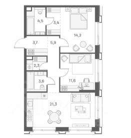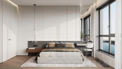 горизонт, точка притяжения для смелых первооткрывателей. Высота потолков от 3,1 до 4 метров. Есть возможность объединения квартир. В проекте главным украшением квартиры стали живописные виды на Москву-реку.