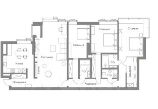 Многофункциональная планировка включает: кухню, гостиную, мастер спальню со своим санузлом и гардеробной комнатой, две спальни со своими санузлами.