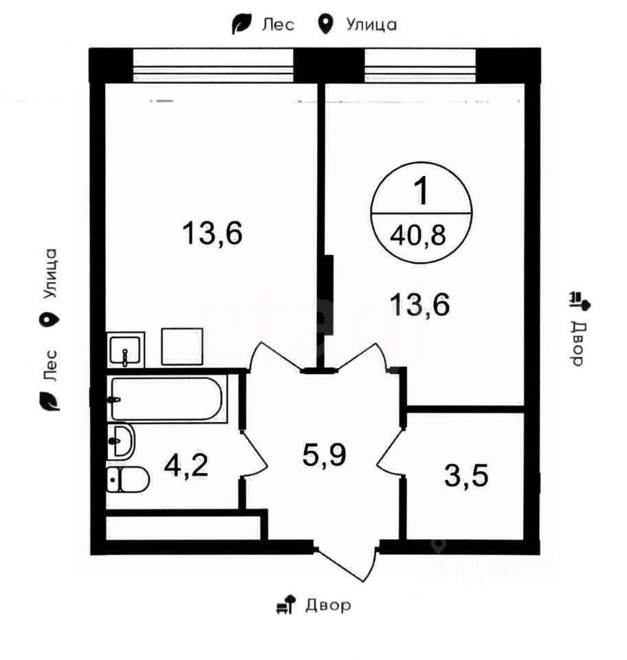 Квартира площадью 40,8 м² расположена на предпоследнем 21 этаже 22-этажного дома, откуда открывается потрясающий вид