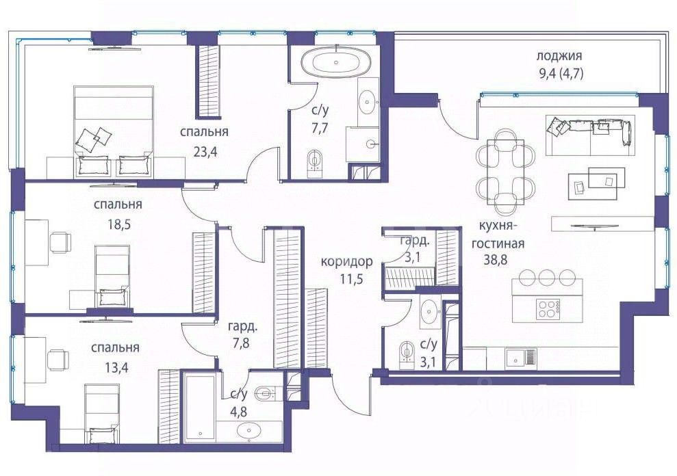 3 спальни,