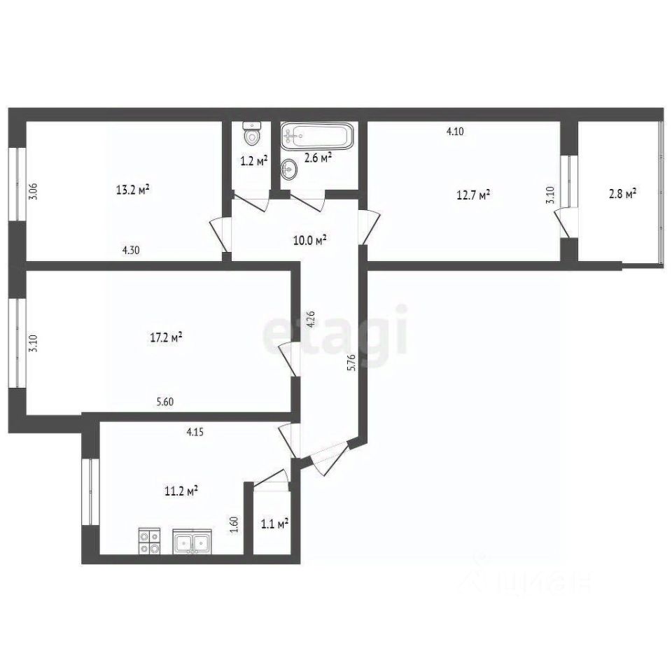Балкон 2,8 м² — можно превратить в мини-сад или зону отдыха.