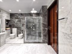 Тоько что закончен капитальный ремонт, в котором использованы натуральные мрамор и гранит для полов, подоконников, санузлов и столешниц, полнотелая датская паркетная доска из красного дерева и ясеня, эксклюзивные итальянские двери высотой 2,5 м.