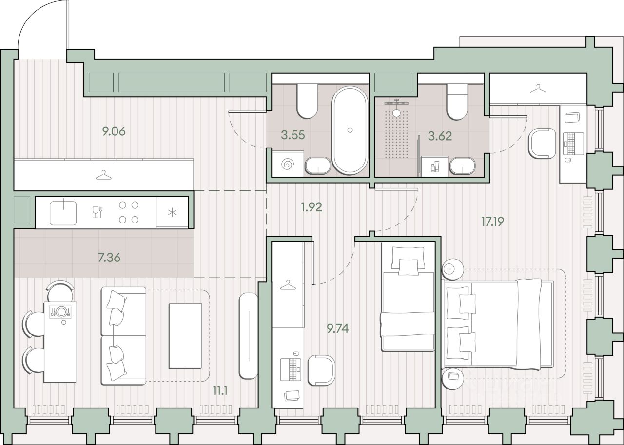 Продаётся 2-комнатная квартира общей площадью 63.54 кв.м. с отделкой white box. Квартира расположена на 22 этаже корпуса 4.1 в жилом комплексе бизнес-класса "Среда на Кутузовском" в пешей доступности от метро "Кунцевская".