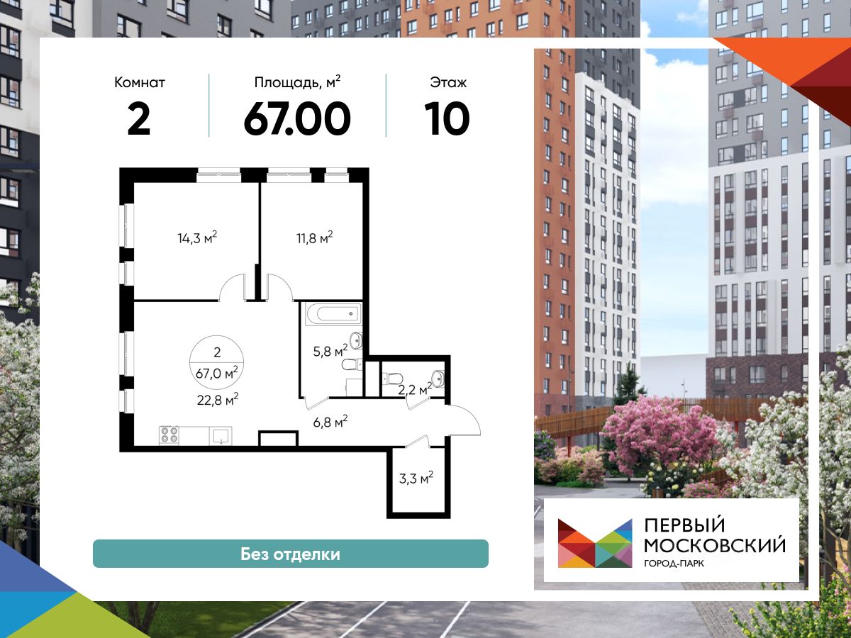 Продается двухкомнатная квартира без отделки в 9 фазе города-парка "Первый Московский".