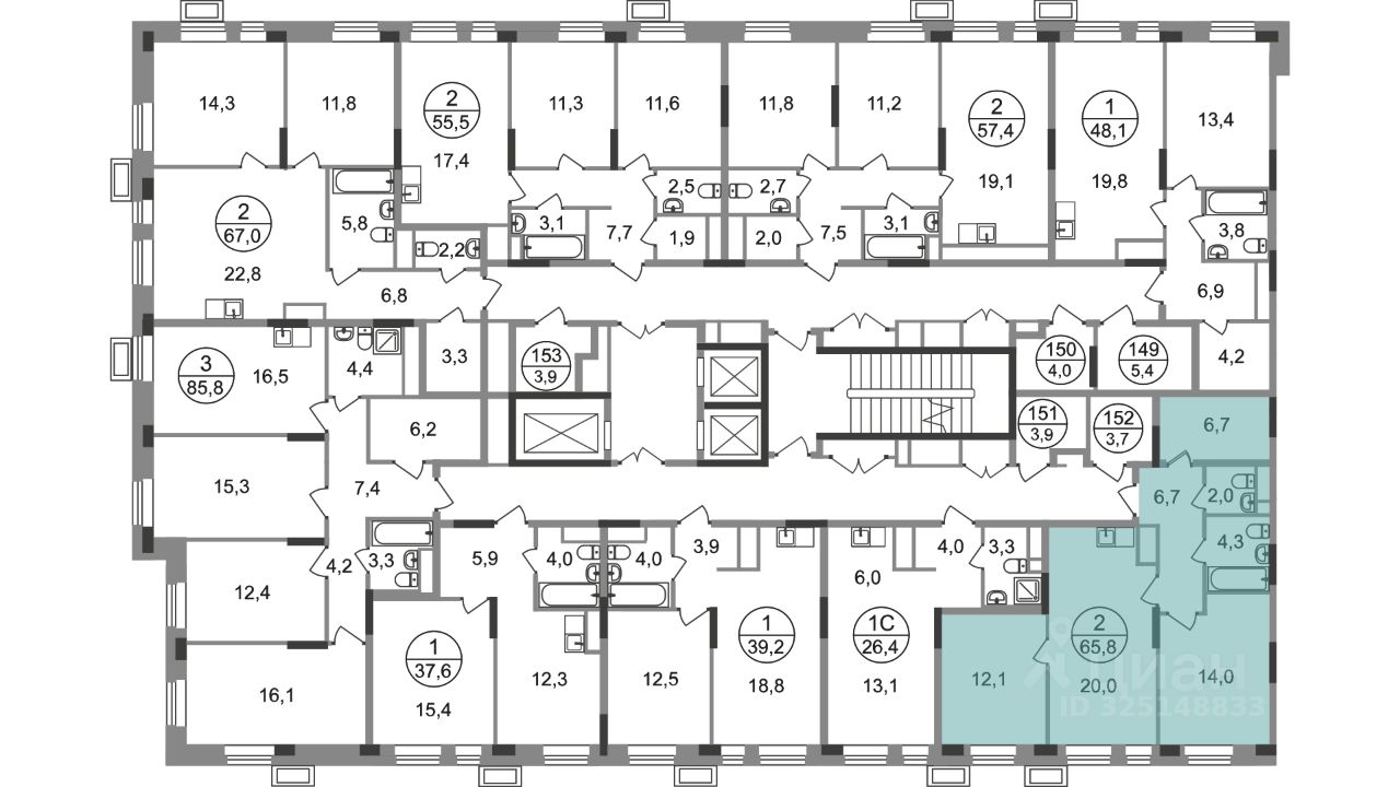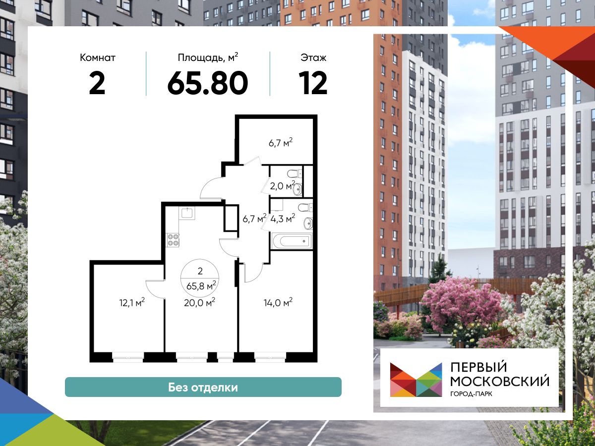 Общая площадь квартиры - 65,8 кв. м, этаж 12 из 19.