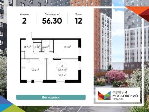 Общая площадь квартиры - 56,3 кв. м, этаж 12 из 19.