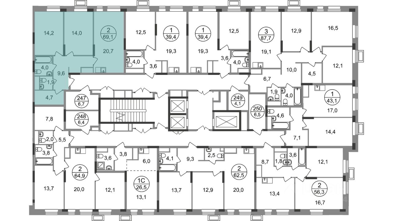 Общая площадь квартиры - 69,1 кв. м, этаж 16 из 19.