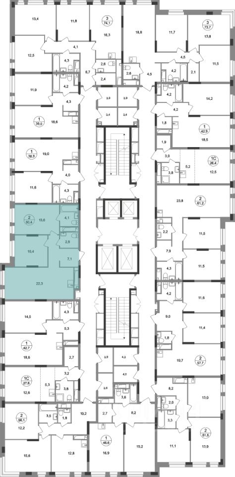 Общая площадь квартиры - 60,4 кв. м, этаж 7 из 19.