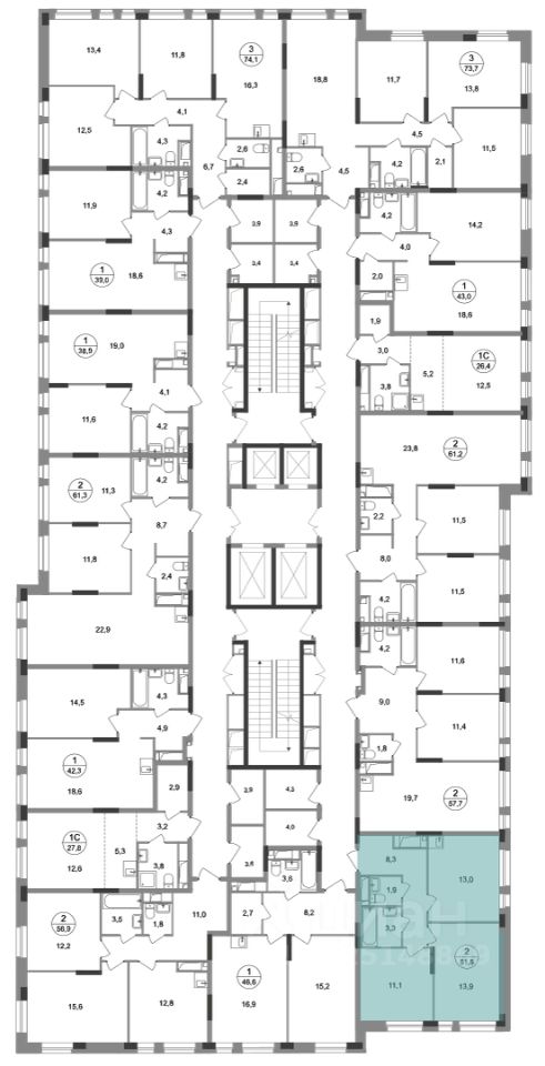 - в каждой секции корпуса - 4 лифта: 2 пассажирских, 2 грузовых