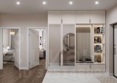 Входные группы выполнены по авторскому дизайну, оснащены системой "тёплый пол". В каждой входной группе будет располагаться комфортабельная зона ожидания с мягким диваном,