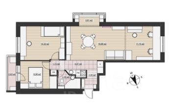 Общая площадь 64,2 м². Жилая площадь 43,7 м²