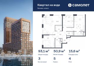 Строим кварталы для жизни с заботой о будущем. Предлагается 3-комнатная квартира бизнес-класса 93,11 кв.м в корпусе 5 на 4 этаже, в ЖК "Квартал на воде"