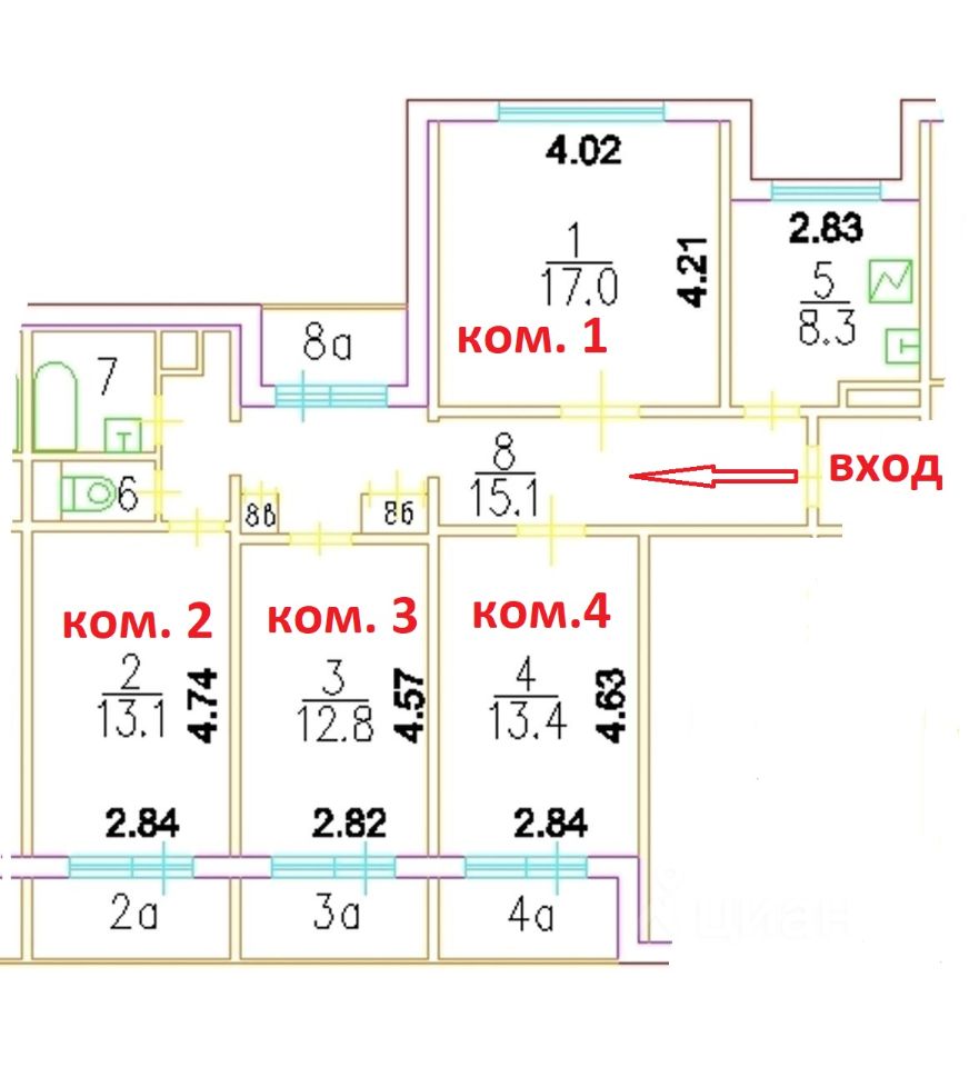 Продается 1/4 доля в 4х комнатной квартире общей площадью 84,5 кв.м.