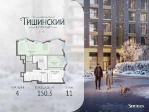 "Тишинский бульвар" - тихий зелёный элитный квартал на Тишинке, в престижном и комфортном районе центра Москвы. В нём создан уникальный для элитного дома прогулочный бульвар в своём огромном парке 1,9 га. В парке оборудованы зоны для активного и тихого отдыха, крытые галереи, приватные зелёные комнаты, многофункциональная спортивная площадка, воркаут-зона, детская площадка, сухой фонтан, ручей.