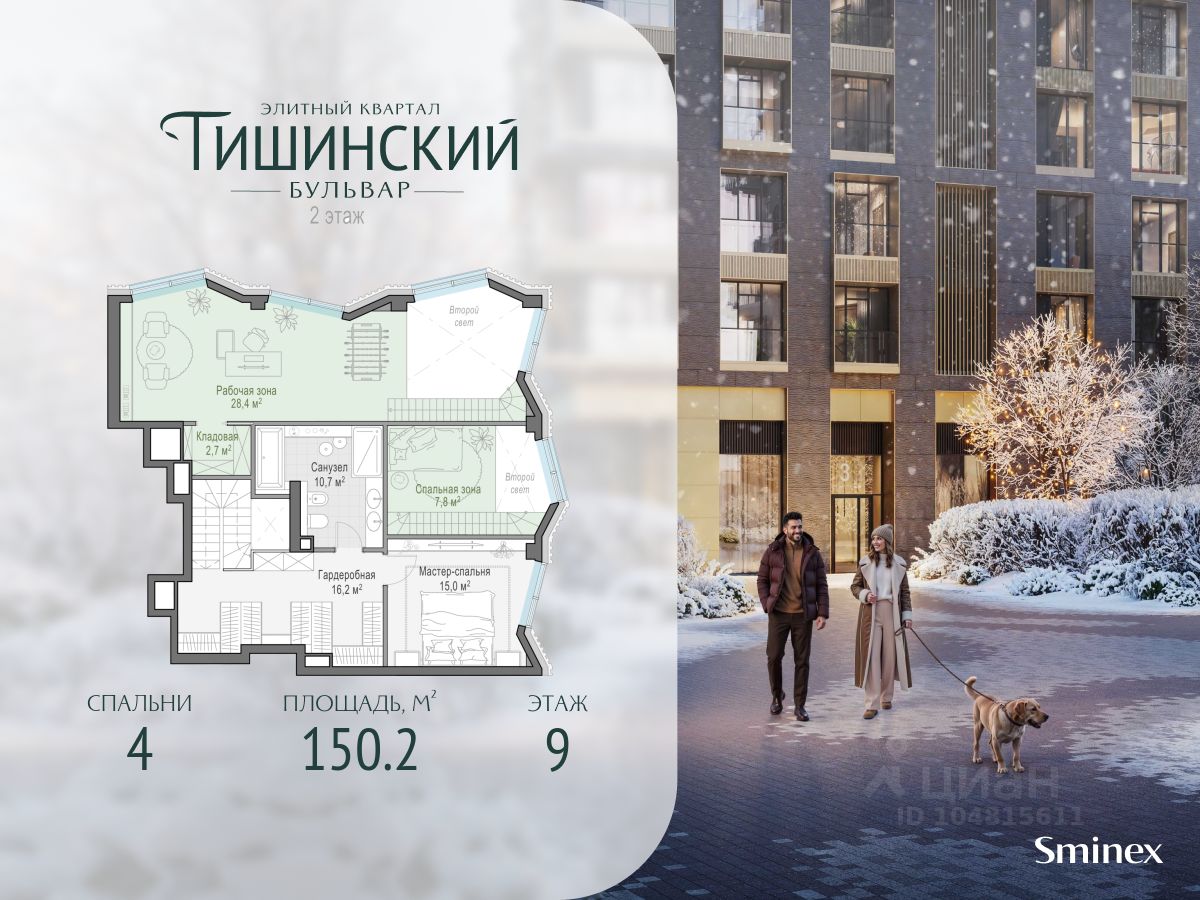 В продаже 4-комнатная квартира квартира в элитном квартале "Тишинский бульвар".