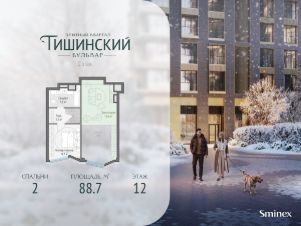 "Тишинский бульвар" - тихий зелёный элитный квартал на Тишинке, в престижном и комфортном районе центра Москвы. В нём создан уникальный для элитного дома прогулочный бульвар в своём огромном парке 1,9 га. В парке оборудованы зоны для активного и тихого отдыха, крытые галереи, приватные зелёные комнаты, многофункциональная спортивная площадка, воркаут-зона, детская площадка, сухой фонтан, ручей.