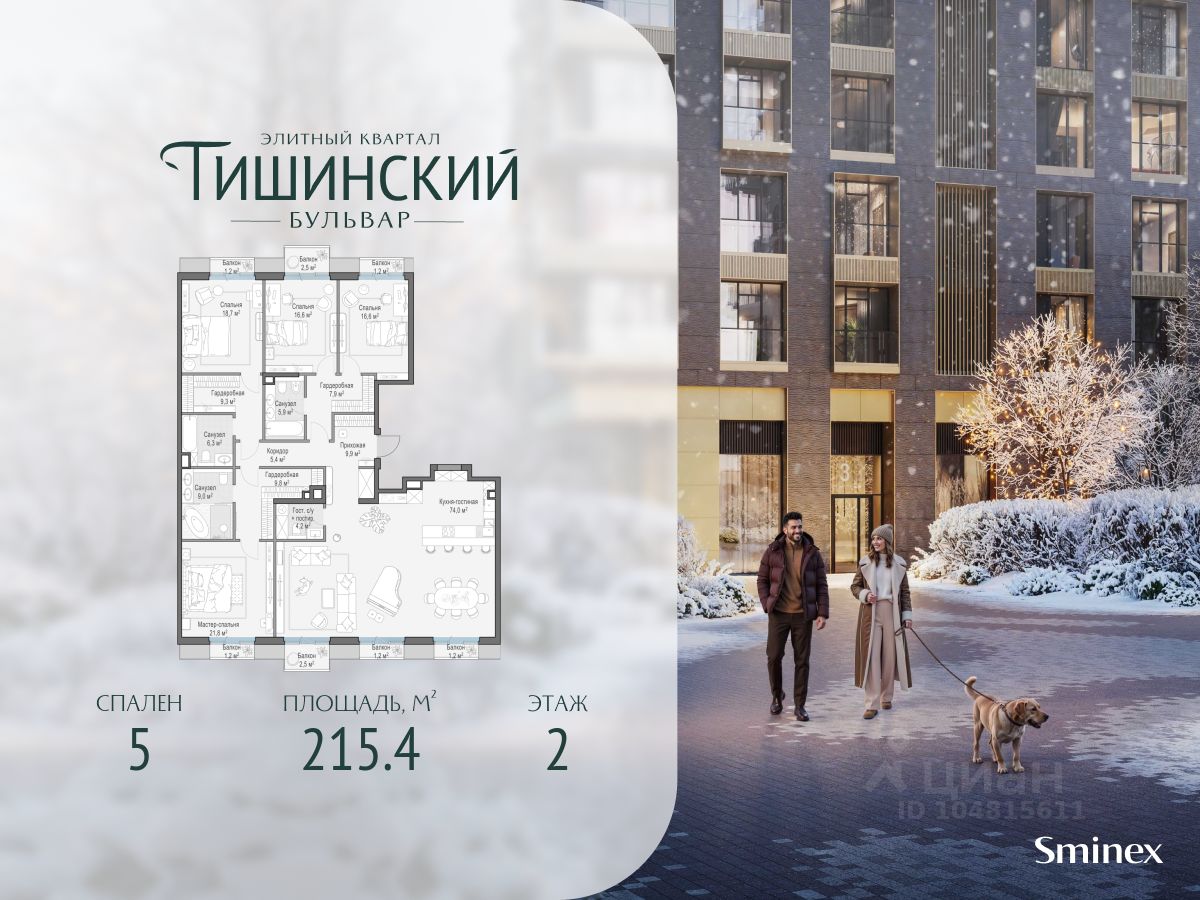 Общая площадь квартиры - 215.40 кв.м.