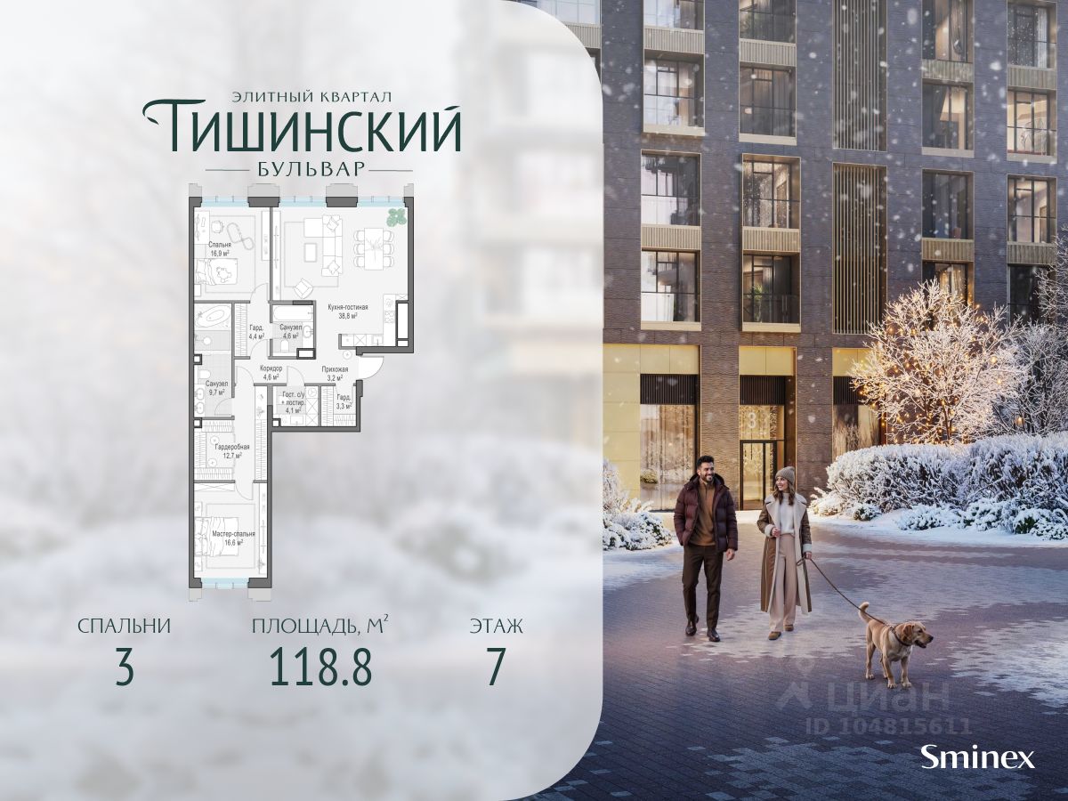 В продаже 3-комнатная квартира квартира в элитном квартале "Тишинский бульвар".