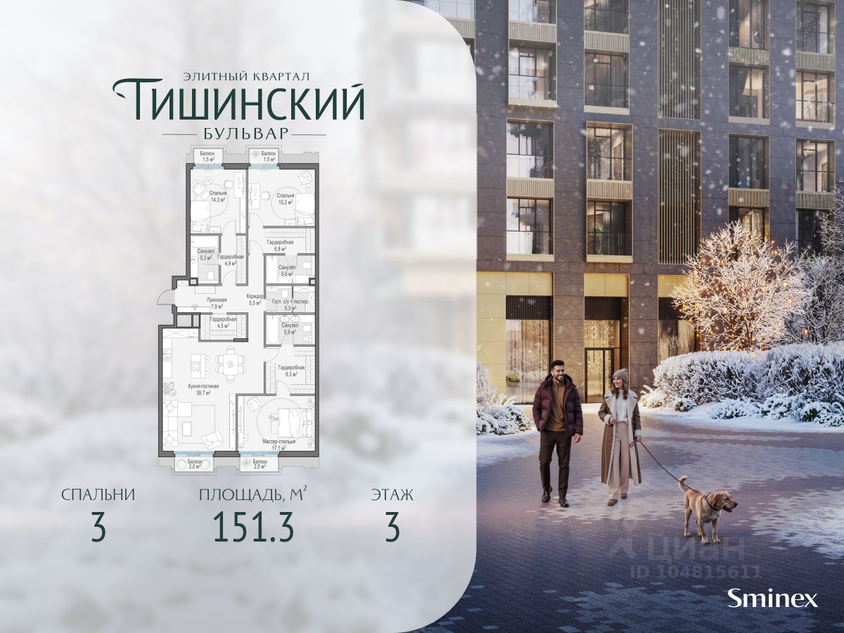 В продаже 3-комнатная квартира квартира в элитном квартале "Тишинский бульвар".