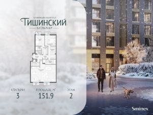В продаже 3-комнатная квартира квартира в элитном квартале "Тишинский бульвар".