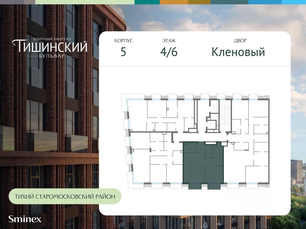 "Тишинский бульвар" - тихий зелёный элитный квартал на Тишинке, в престижном и комфортном районе центра Москвы. В нём создан уникальный для элитного дома прогулочный бульвар в своём огромном парке 1,9 га. В парке оборудованы зоны для активного и тихого отдыха, крытые галереи, приватные зелёные комнаты, многофункциональная спортивная площадка, воркаут-зона, детская площадка, сухой фонтан, ручей.