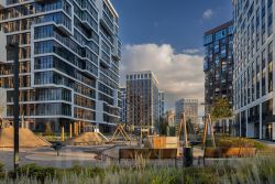Территория комплекса 16 Га. Собственный выход к благоустроенной набережной реки и большой парк. Огороженная охраняемая территория, консьерж-сервис, спортивные и детские площадки, кафе, магазины, площадка для выгула собак, и собственный спорт-зал на территории.