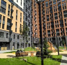 Окна выходят как во двор, так и на улицу, отличный панорамный вид на лес, закрытый двор свободный от машин с детскими и спортивными площадками, сразу за домом - многоуровневая парковка.