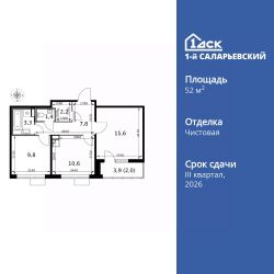 Продаётся 2-к квартира номер 388 общей площадью 52.7 кв.м. на 15-м этаже 16 этажного здания. Чистовая отделка. Цена с учётом скидки.