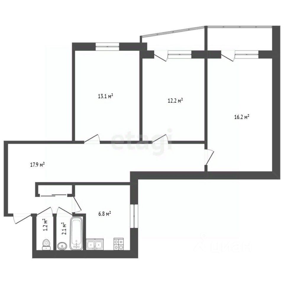 Общая площадь 65 кв м, кухня 6.4 кв м, распашонка, окна расположены на разные стороны что обеспечивает хорошую естественную вентиляцию и много света в каждой комнате. Квартира готовая к ремонту или косметическому обновлению. Быстрое удобное сообщение с центром города.